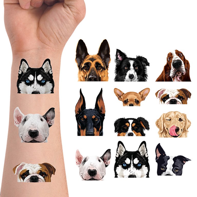 Wirester Temporary Tattoos For Women Girls Boys Kids Waterproof Fake Tattoos On Face Hand Neck Wrist Arm Shoulder Chest Back Legs Set 11 Dogs Basset Hound Shepherd Dog Bulldog Chihuahua Walmart Com